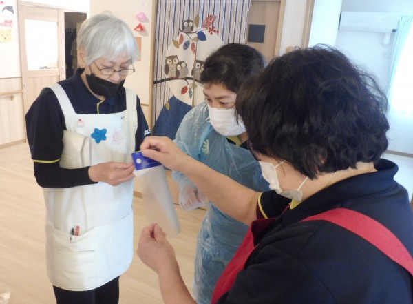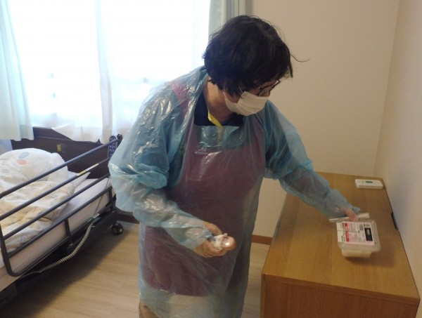 こちらは先月行いましたホーム内での研修【感染症対策研修】の様子になります。