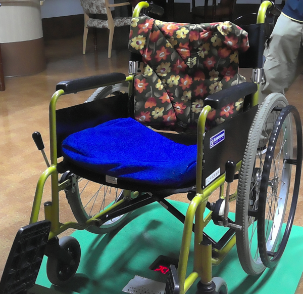 車いすの方は、毎回の測定時前に車いすのみの重さを測り、体重を測った後に、車いすの重さを引いています。
