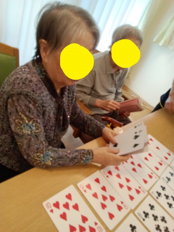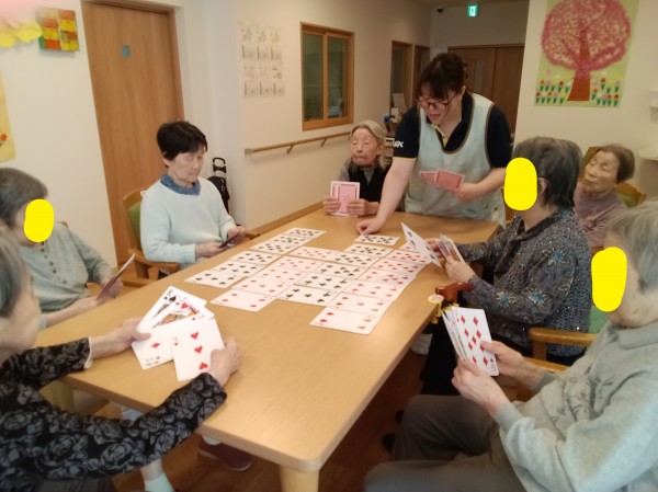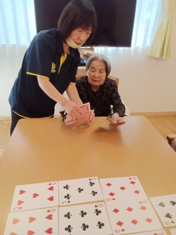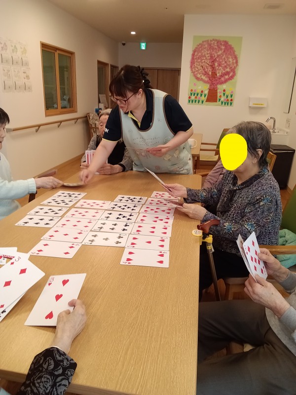 職員のNさんがみんなをサポートしています!忙しいけど真剣勝負なのでしっかり戦略を考えながらトランプと向き合っています☺真剣