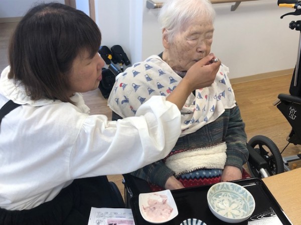 いつも午前中に来られて昼食時にはお帰りになるのですが、たまたま食事介助をしていたわたしに電話が来てそれを見かねたご家族様がわたしがやってみようかしらと、自ら食事サポートをしてくれました!