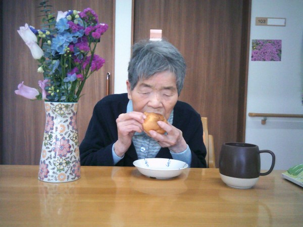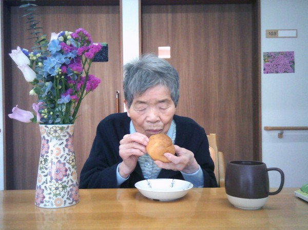 ご家族様:次男様が面会に来られお花とおやつをお持ち下さりました。おやつに(シュークリーム)を美味しく頂きました(*^_^*)