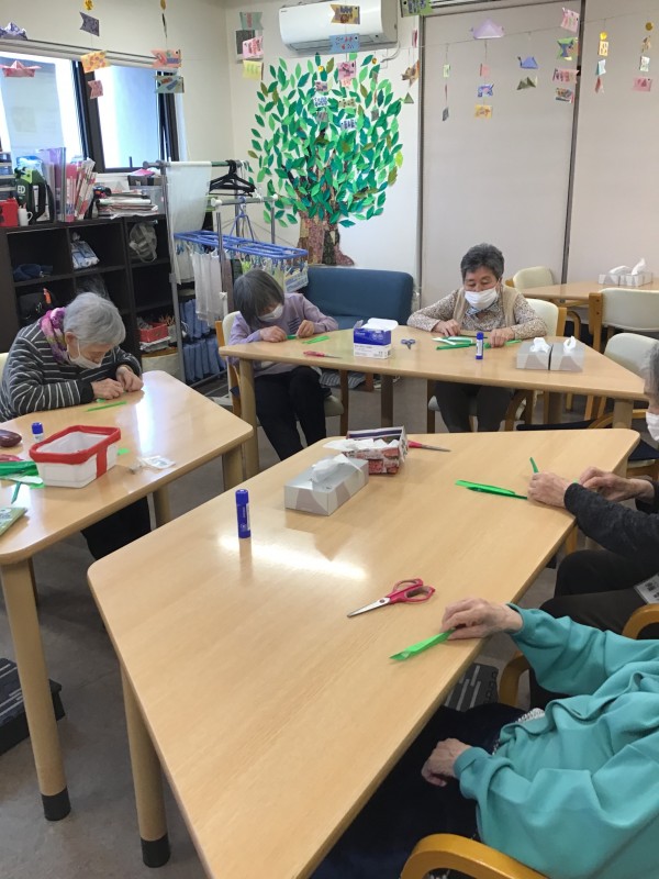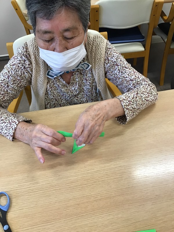 そんな初夏の陽気ですが暦の上ではまだ春なので、皆さんと5月にちなんだ菖蒲の花作りを行いました。