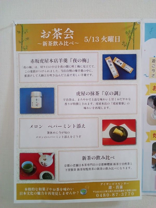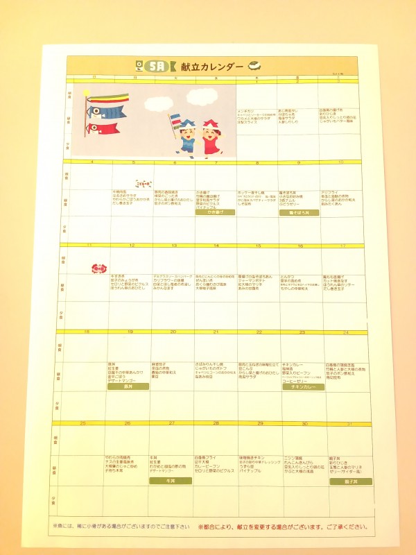 5月の献立と、お茶会の日程が決まりましたので、お知らせいたします( *´艸`)