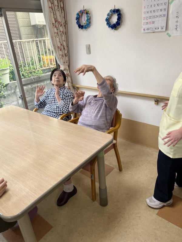 今回は1階の皆さんによる風船バレー・レクのご様子をご覧ください。