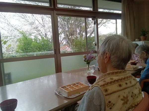 いずみ野では4月11日に外の桜を見ながら“お弁当”を食べました!