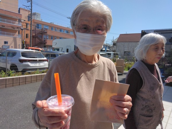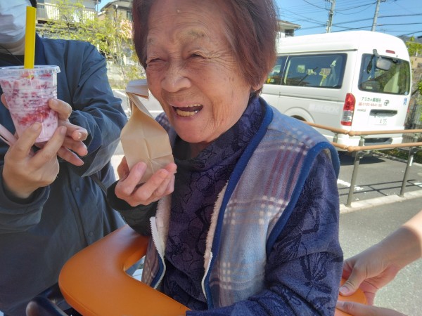 キッチンカーの方の計らいで、「小さめのいちごミルク+少な目ベビーカステラ」で「アミカの郷越谷セット」というメニューを準備してくれました