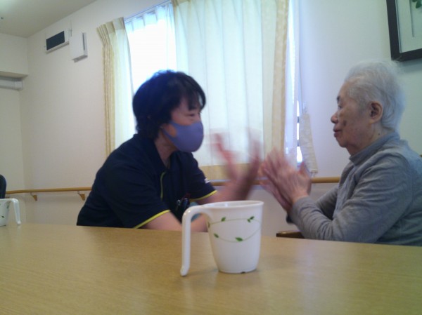 入居者皆様と一緒に手遊びを行い楽しい時間を過ごされておりました(^_-)-☆