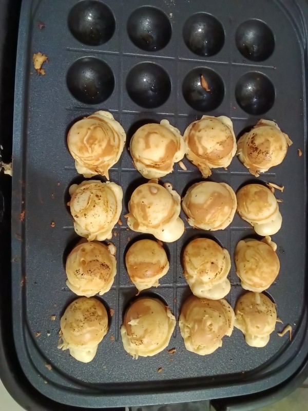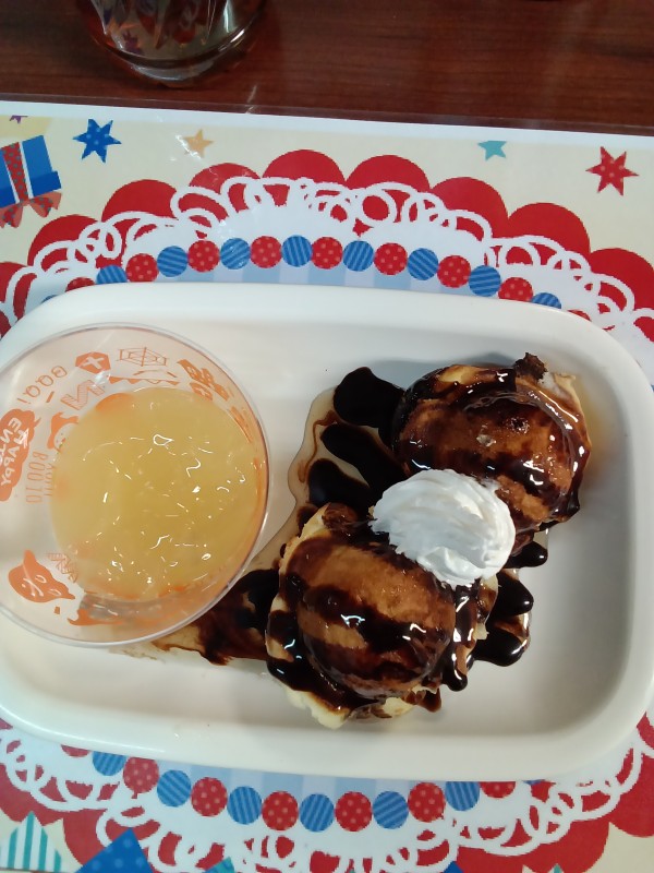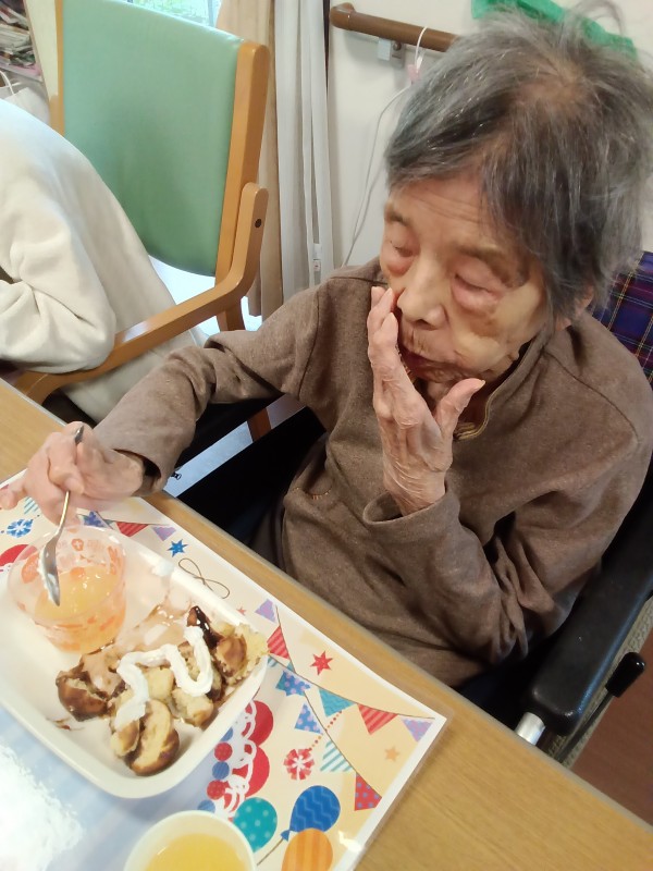 たこ焼き機を使って焼き上げたパンケーキとゼリーの洋風スイ-ツに入居者様は大喜びでした