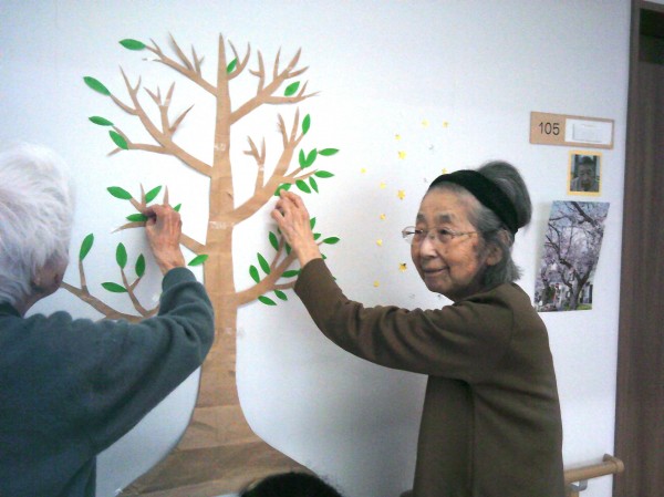 桜の花が散り新緑が出てきましたので葉っぱの貼り絵を行っています。そのご様子をお知らせいたします。