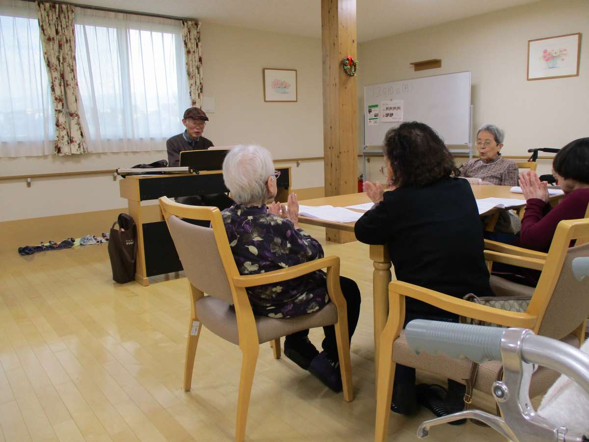 冬の童謡、唱歌を中心にクリスマスソングを皆さんと歌って楽しみました。 熱唱の後には、オーナー様ご自慢のコーヒーを皆さんでいただきました。