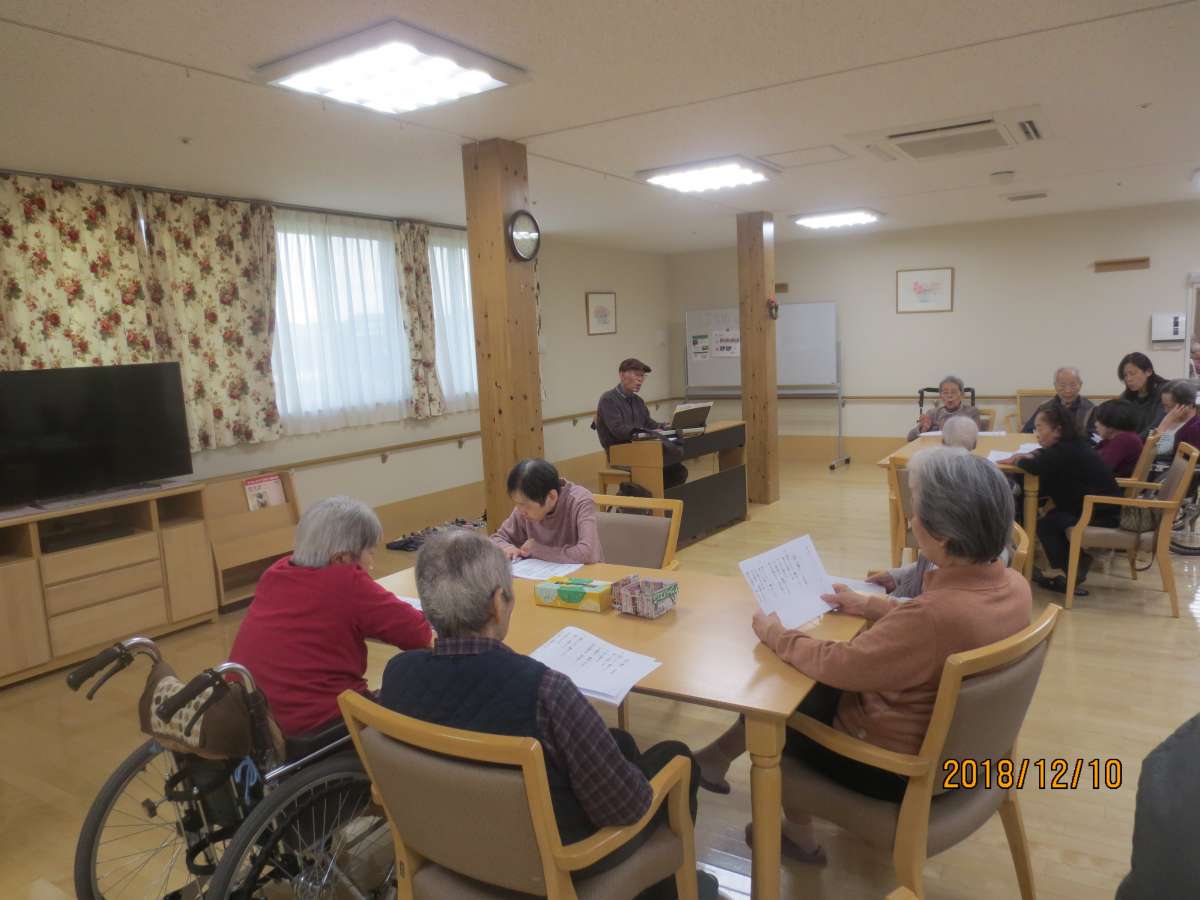 12月10日、みんなの家・朝霞膝折では毎月恒例の「ホーム喫茶・歌の会」を催しました。