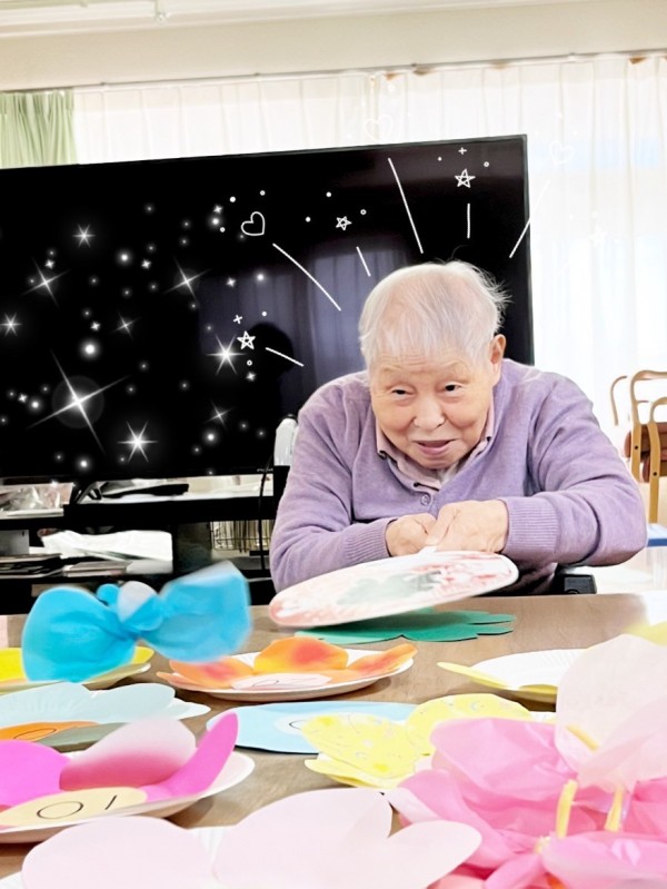 A様とM様が職員と一緒にお花の得点皿を作成してくださいました♪