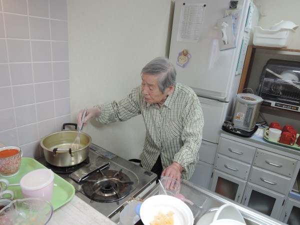 朝ご飯が終わり、おやつの桃ゼリー作りです!(^^)!
