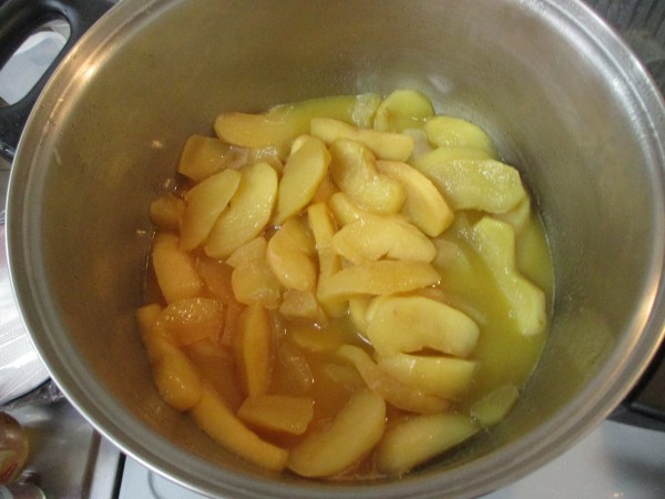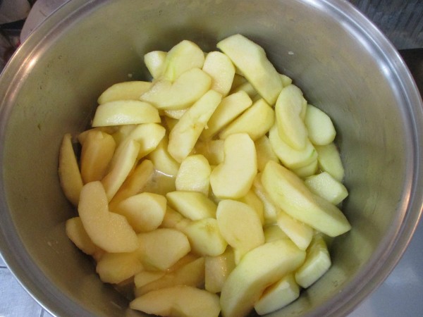 林檎5個に、バター、ハチミツ、シナモンシュガー、レモン汁を入れてグツグツに煮ます。