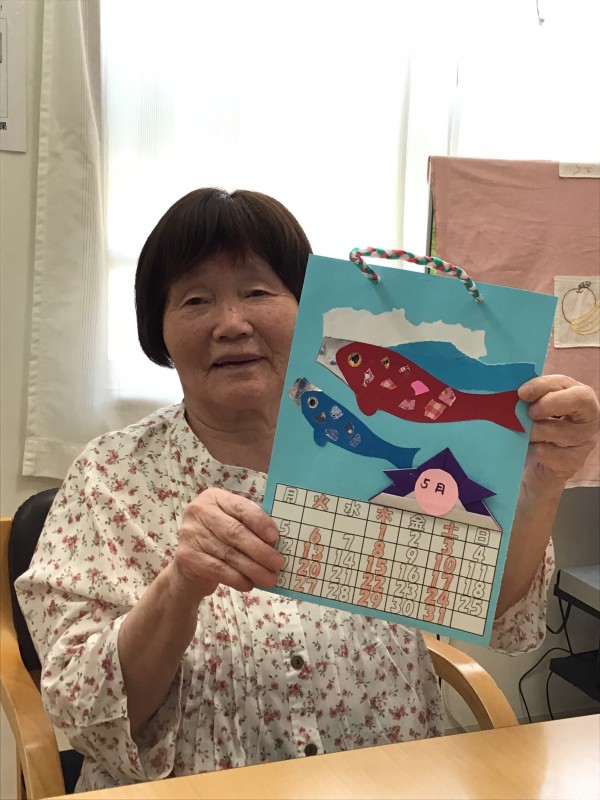 デイサービスかたくりの里中田南 では毎月カレンダーを皆さんに作っていただいています。