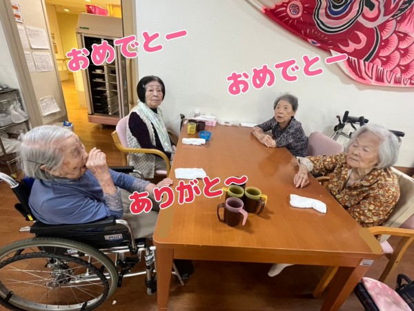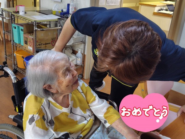 「お誕生日おめでとうございます!」「素敵なシャツがお似合いですよ!101歳おめでとうございます!」
