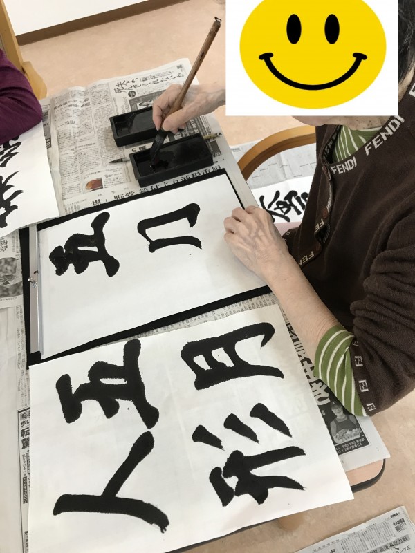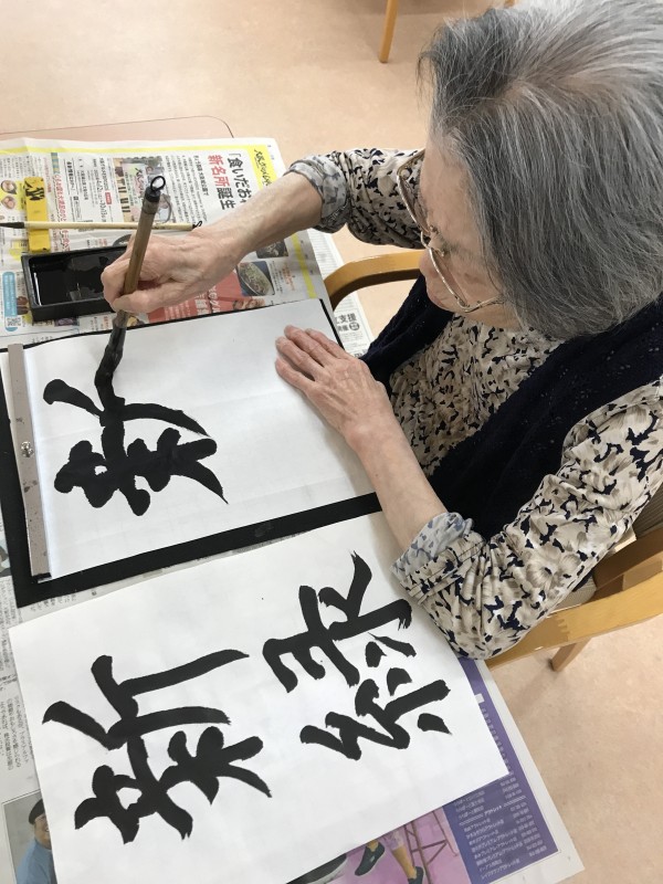 書道好きのご利用者様が和気あいあいとした雰囲気の中書道に取り組みました。