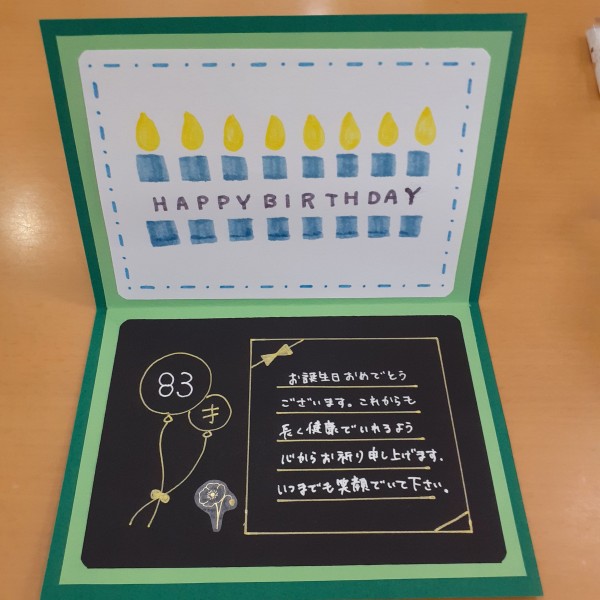 スタッフから手作りのメッセージカードを渡し、