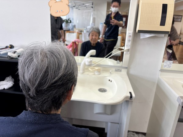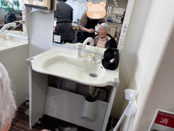 さっぱりされましたねぇと声をかけると「どうかしら」「恥ずかしい」と笑顔で