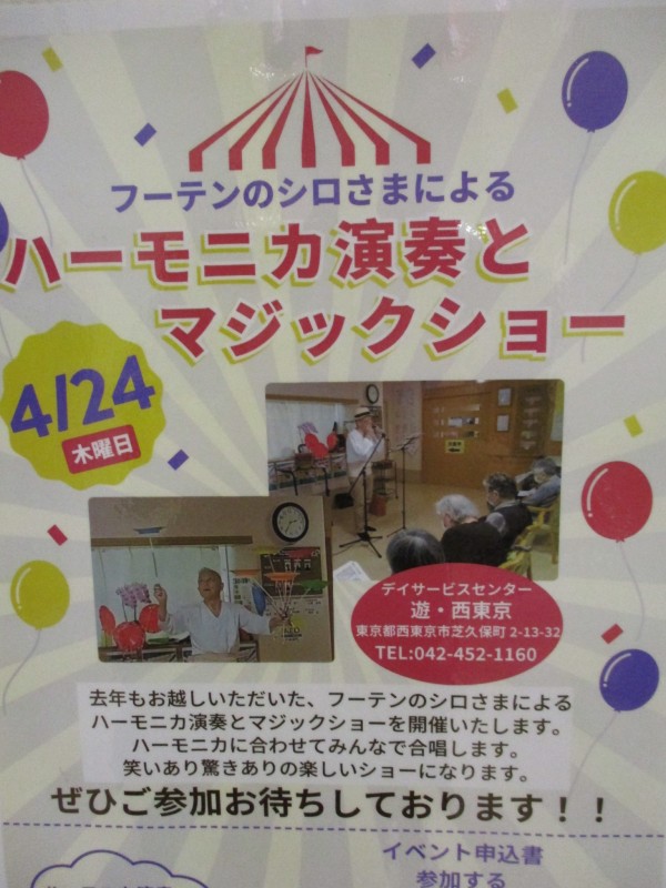 先日ハーモニカ&マジックショーが行われ、大盛況でしたのでその様子をご紹介します♪