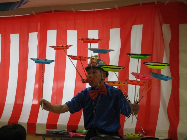 圧巻の皿回しや絵柄が変わる扇子など不思議な光景に利用者様も釘付け!
