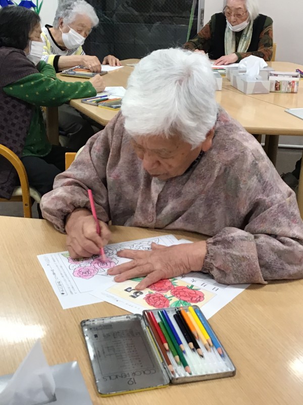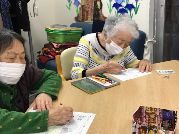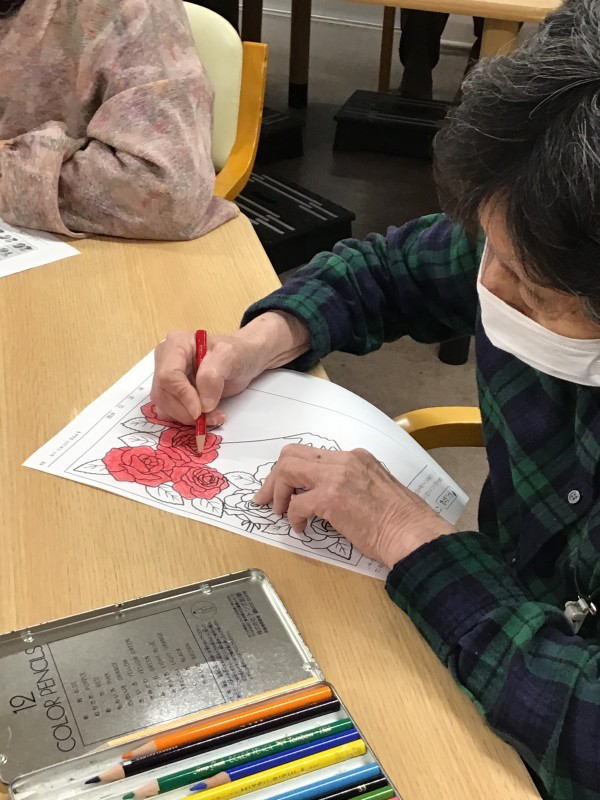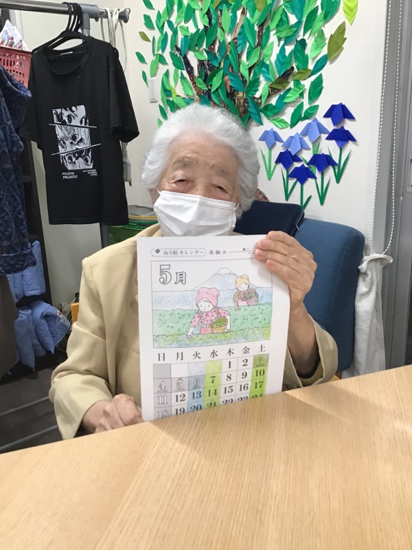 デイサービスでは毎月、月の終わりによく月のカレンダー塗り絵を行っています。