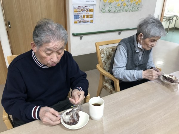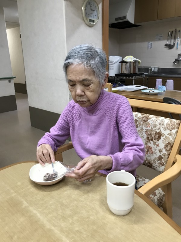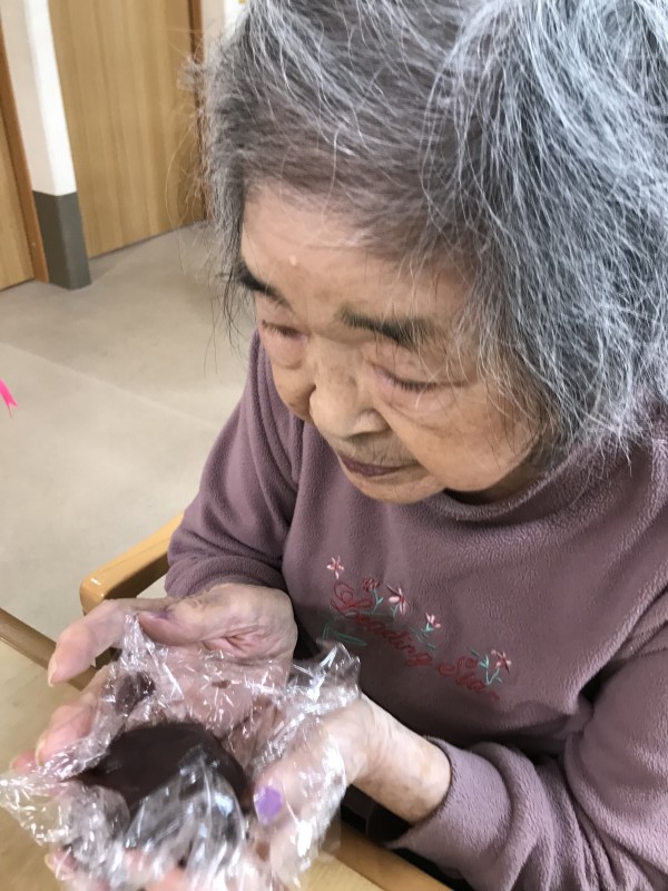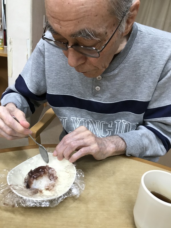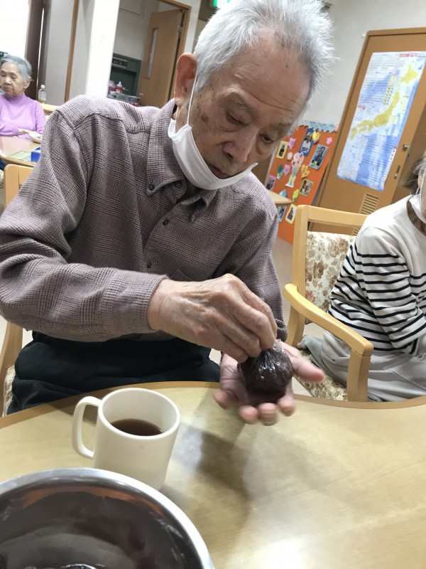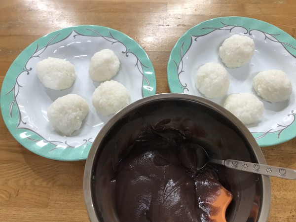 ご飯は、柔らかめに炊いて小さく握り、餡子を塗って頂くのは、ご利用者様です。