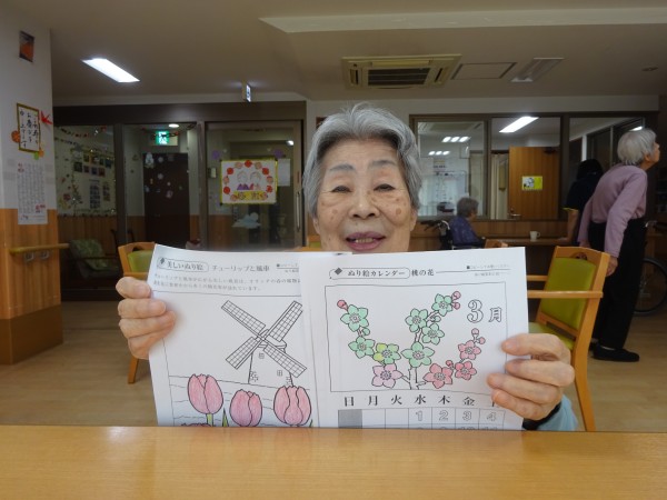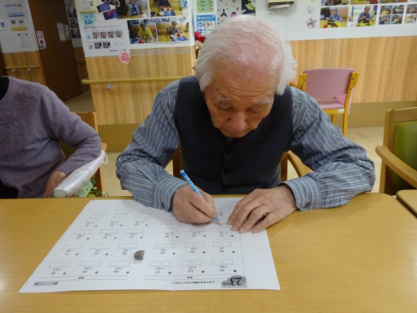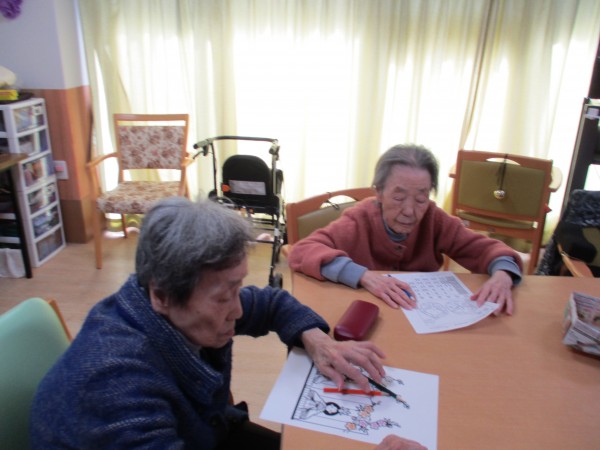 お一人お一人に合ったぬり絵、計算問題、ゲームなどそれぞれに行います。
