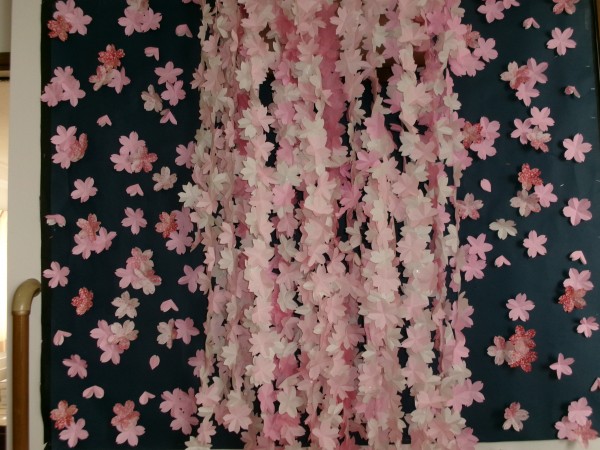 ホールの満開の桜を見ながらの