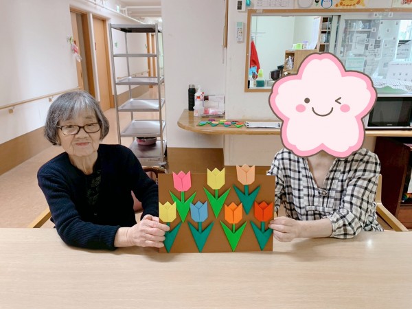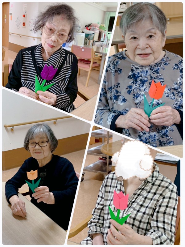 早速皆さんの力を借りて、折り紙でチューリップを作っていったのですが…