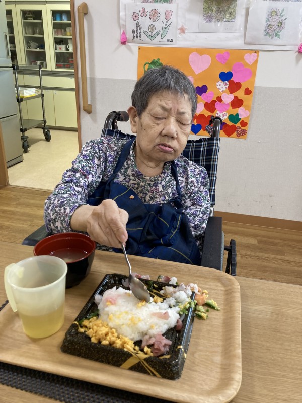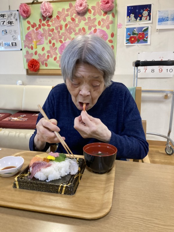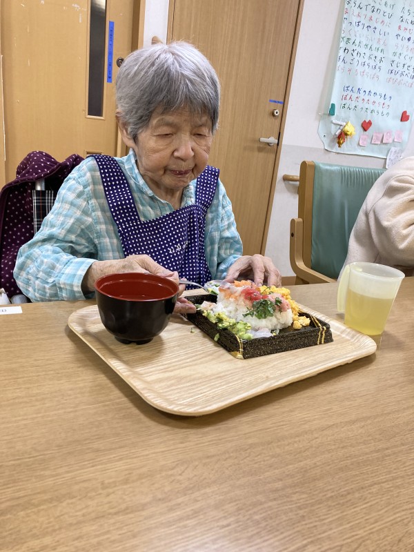 本日は、入居者様のご要望によりちらし寿司を購入して召し上がって頂きました。