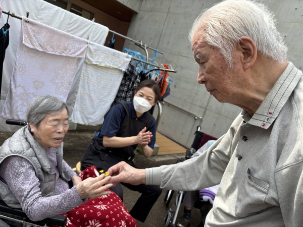 金子ホーム長にもお一つっと優しい小さなお花の贈り物をプレゼント(✿˘艸˘✿)