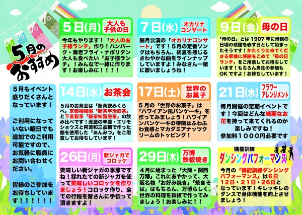 5月は恒例の『大人のお子様ランチ作り』から始まって、お茶会、