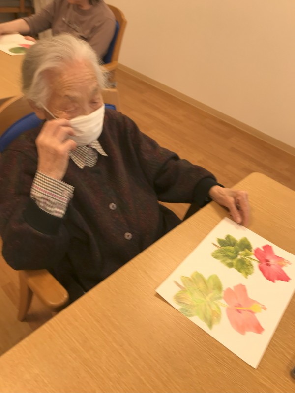 塗り絵をはみ出してたって色が違ってたってそんなのいいんです。みなさん思いおもい自分なりの塗り絵をして楽しまれていたようでした♪苦手な方もいらっしゃったかもしれませんが芸術の時間もいいものですね