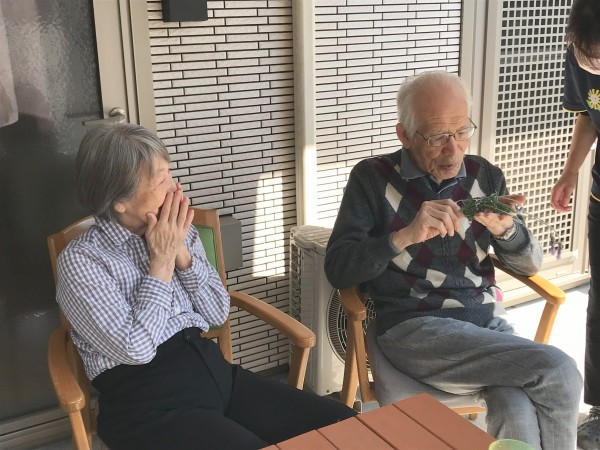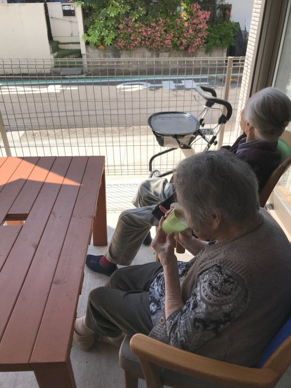 2階テラスで外気浴【グループホームみんなの家横浜綱島】
