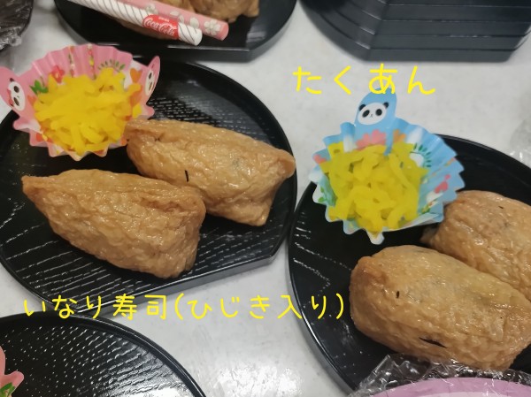 ✿ひじきたっぷりおいなりさん✿お新香も添えて
