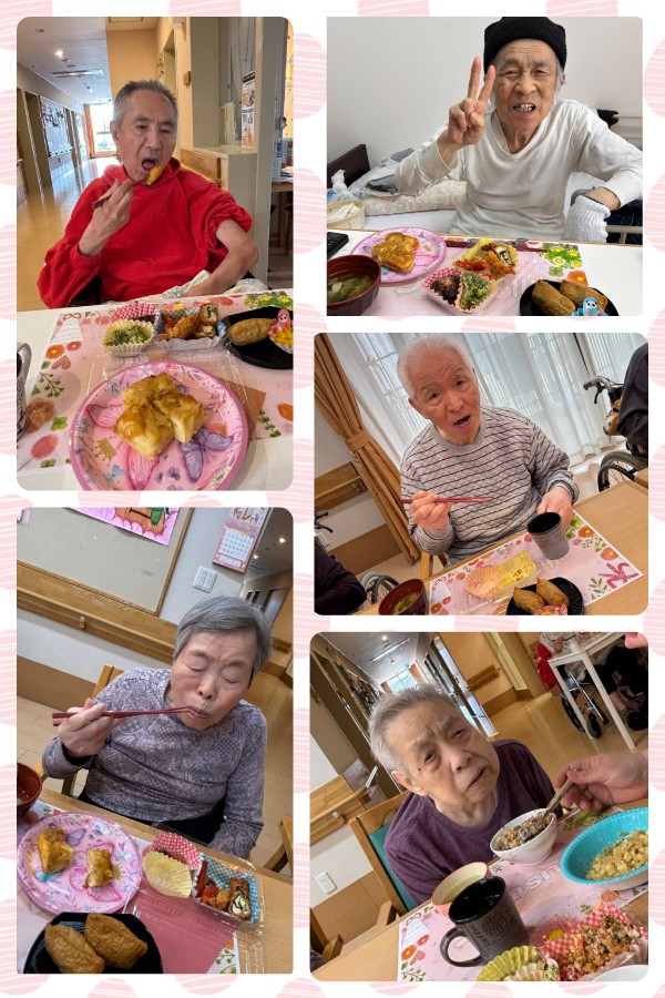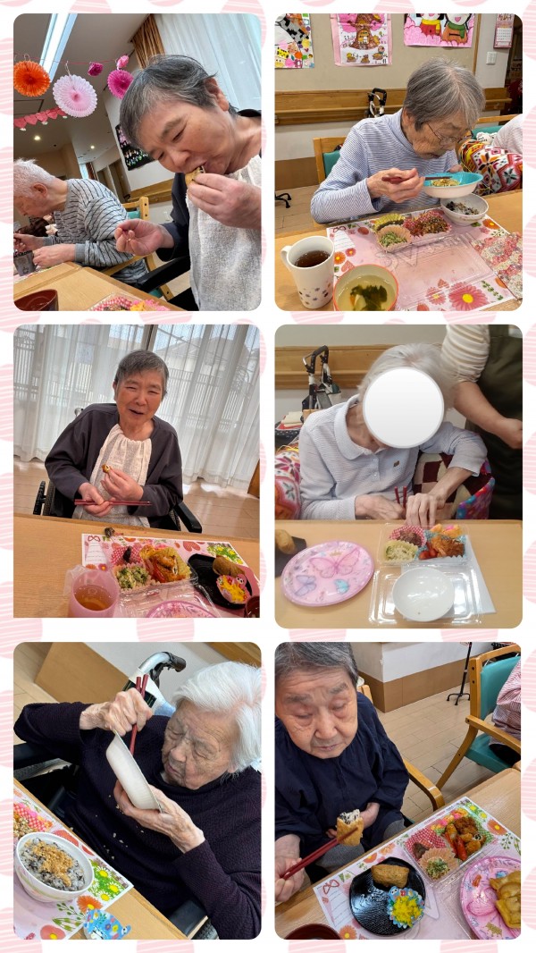 見た目も楽しく華やかに!室内でもお花見気分を味わえるように行楽弁当をご提供致しました^^