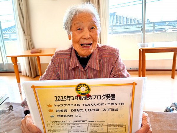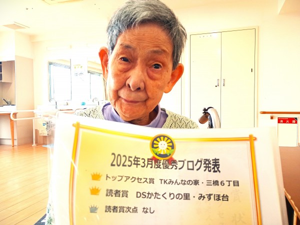 ★☆三橋6丁目のブログが『トップアクセス賞 』表彰‼3月度優秀ブログ発表2025年令和7年✨ 『みんなの家 三橋6丁目 介護ブログ』☆★