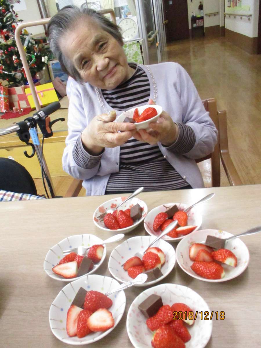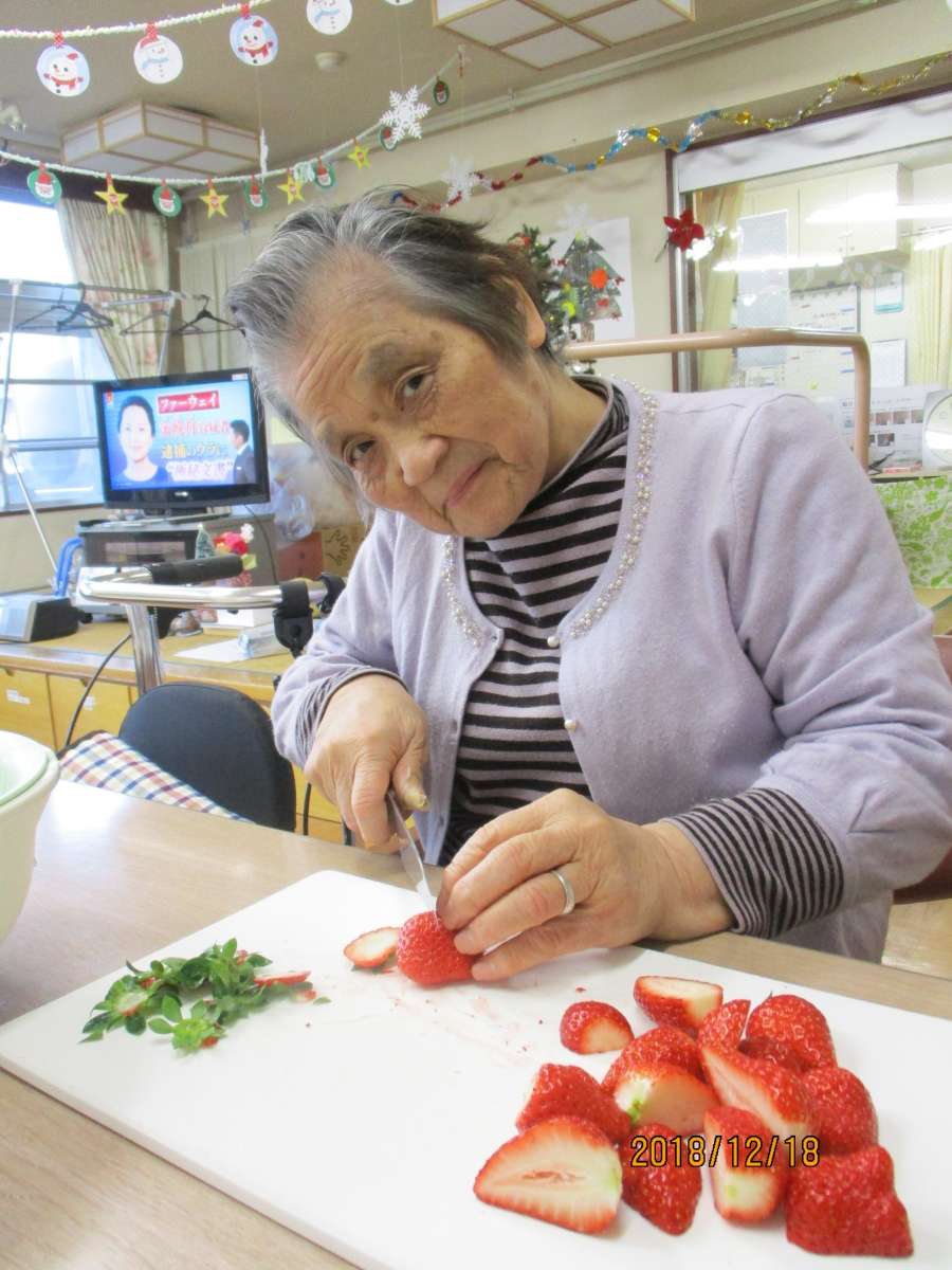 「みなさんでどうぞ」とのことで、Sご利用者様にヘタ取りなどをお手伝いいただき
