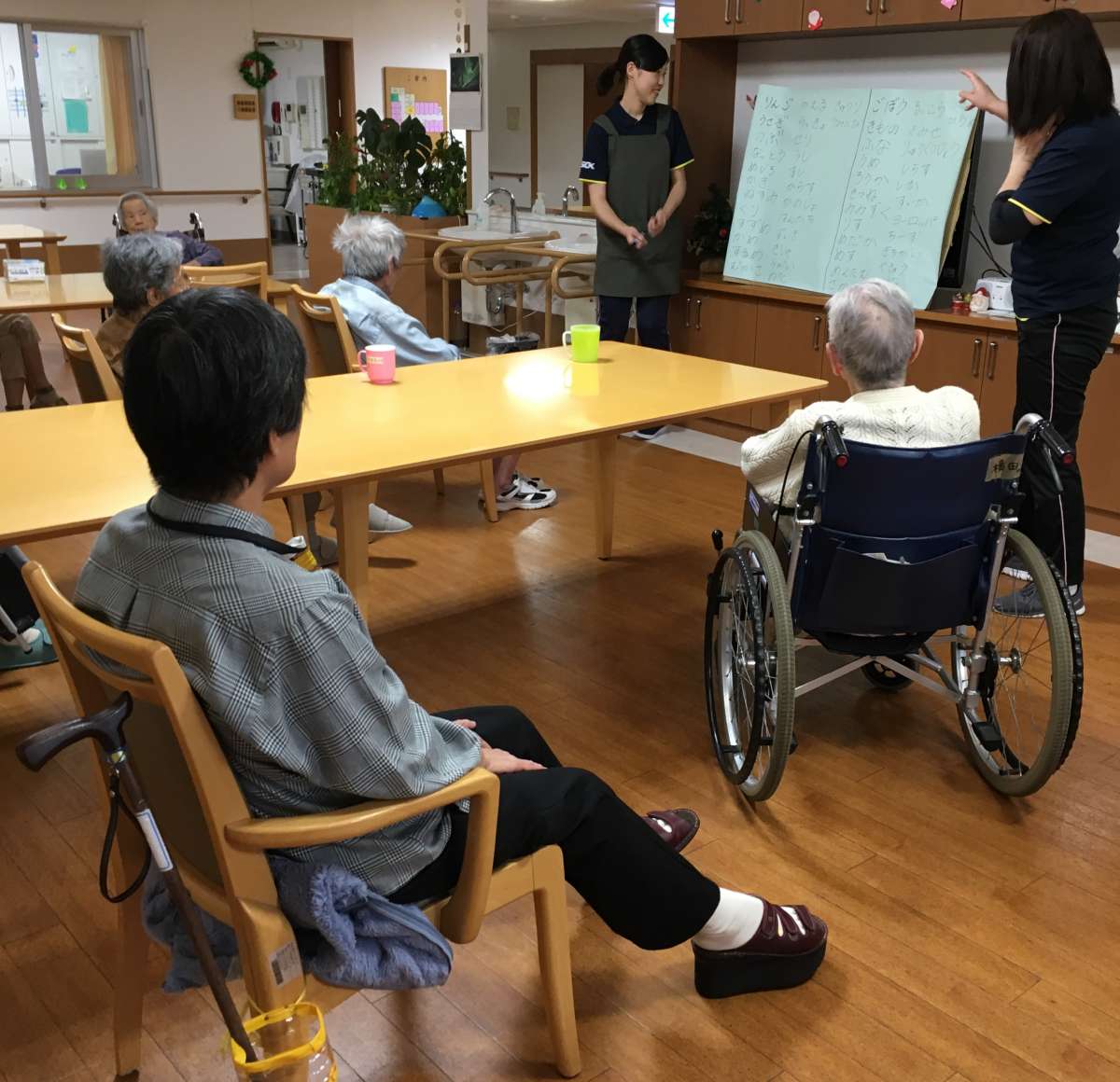 そんな時は皆さまとレクをやって盛り上がりましょう。ということで 先ずはラジオ体操で身体を温めて、そのあとはしりとりで頭を温めましたよ。