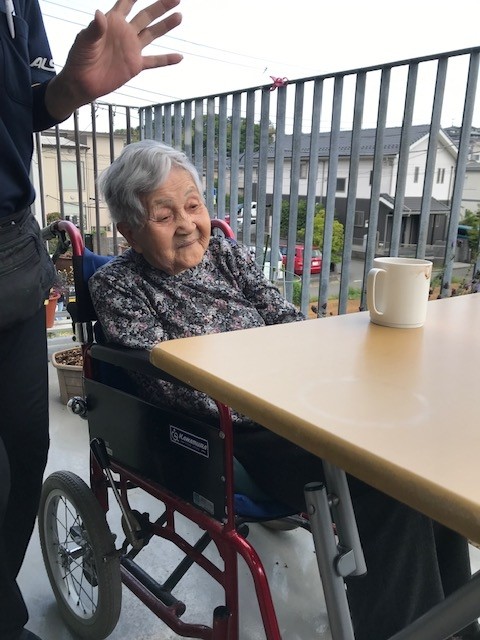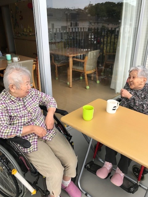 テラスに出て外気浴をされながらお茶を飲まれている様子をご紹介します(^^)/