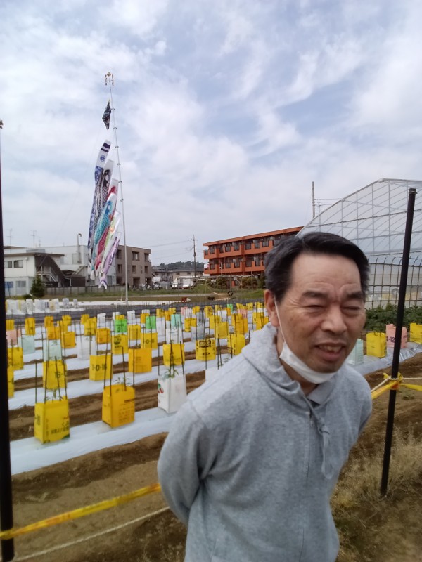アイキャッチ画像職員の近くに神社の鯉のぼりの画像です