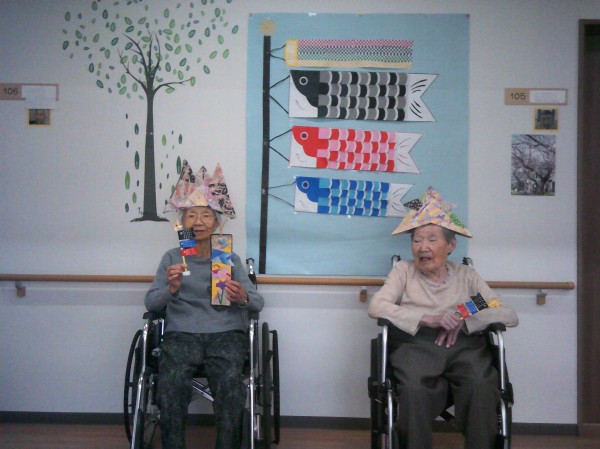 今日は5/5こどもの日レク・小さい鯉のぼりを作り大きい????貼り絵の前で写真を撮りました。そのご様子をお知らせいたします!