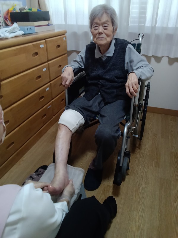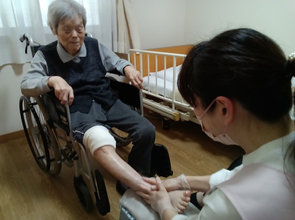 足の浮腫や血行が良くなるマッサージを受けられています。