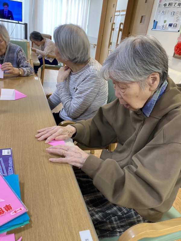 今日は、折り紙でチューリップを折りました。