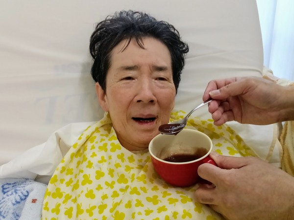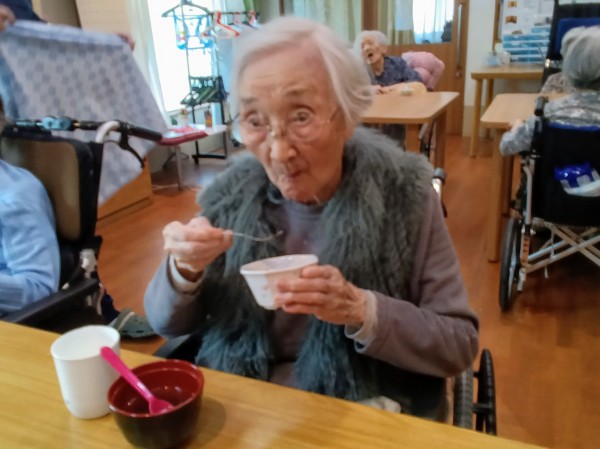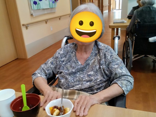 3時のおやつにはフルーツと抹茶ミルクを召し上がり、最後に各階で集合写真を撮りました。