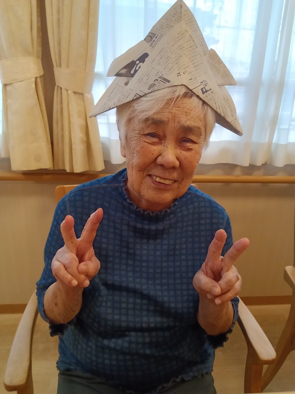 新聞紙で兜を作り写真を撮りました(*^^*)