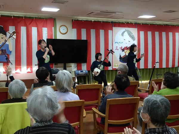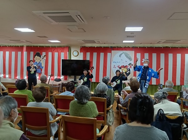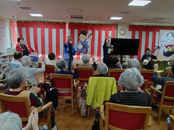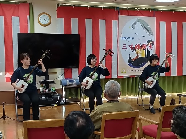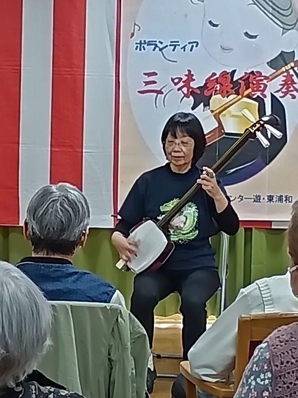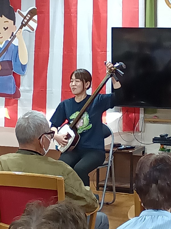 こちら、遊・東浦和では職員の紹介のボランティアグループ「梅龍会」さんが来て下さり大迫力の三味線演奏がありました!
