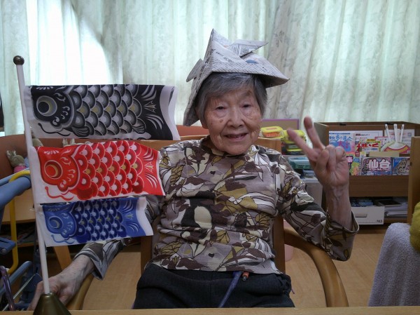 と、職員が兜を折ってきてくれたので、皆様にかぶっていただきました(*^^*)