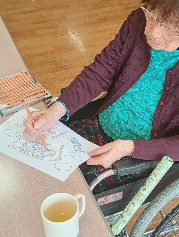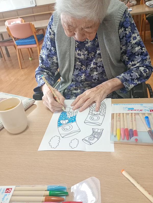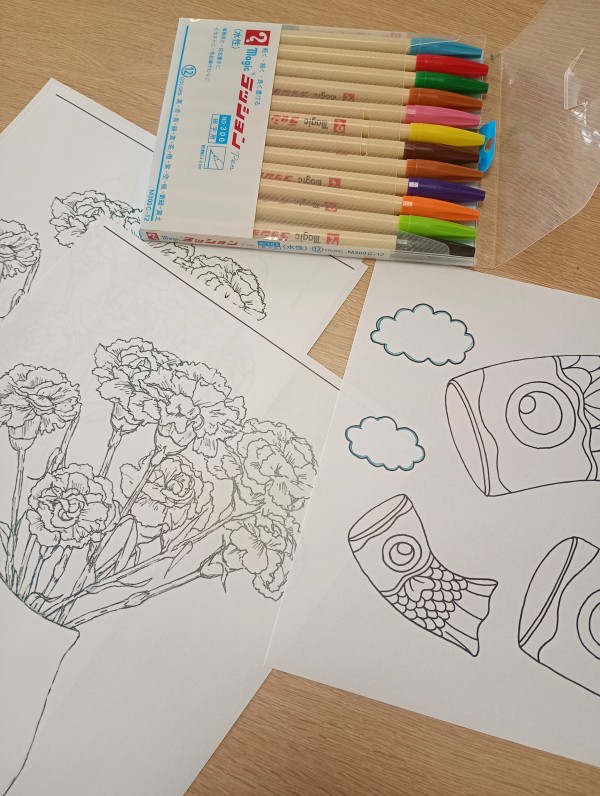 5月をテーマとした塗り絵を用意したらご利用者の皆さんが各々の色彩感覚で彩ってくださいました!!